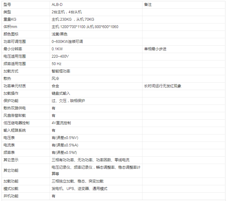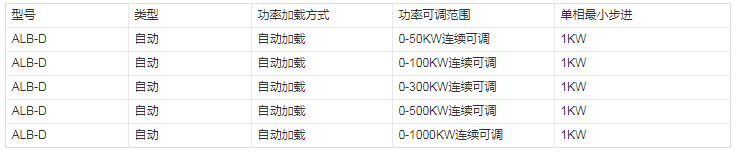 ALB-D系列自動交流負載箱產(chǎn)品規(guī)格(1000KW以上可定制):